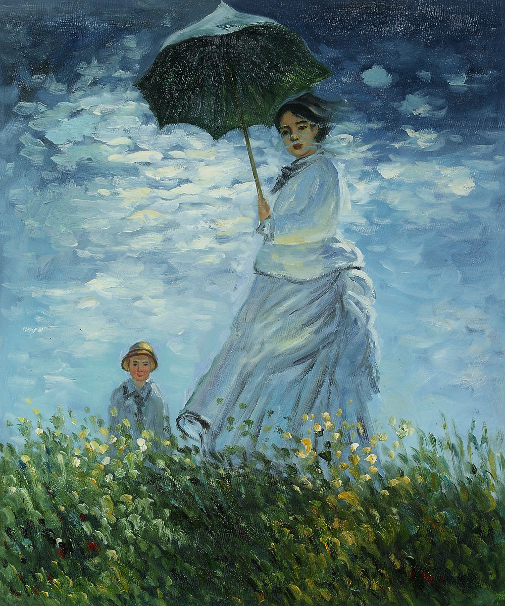 French painter Claude Monet ( 1840 - 1926),the most important impressionist painter in france,one of the representative and founder of impressionism. And the most consistent and prolific practitioner of the movement's philosophy of expressing one's perceptions before nature, especially as applied to plein-air landscape painting.His most important is to change the style of the shadow and the contours of the painting, do not see a very clear shadow within the Monet paintings, can not see the contour salience or flat type.