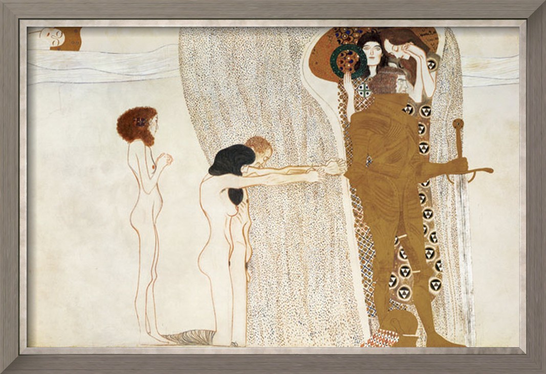 BEETHOVEN FRIEZE DESIRE FOR HAPPINESS, C.1902, is a famous Klimt painting.Klimt's mature style combines richly decorative surface patterning with complex symbolism and allegory, often with overtly erotic content. This work of art has the same emotions and beauty as the original. Decorative your home with the msater Gustav Klimt's painting will sure to bring many admirers.